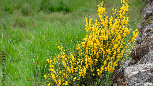 Cytisus scoparius, common broom or scotch broom yellow flowers