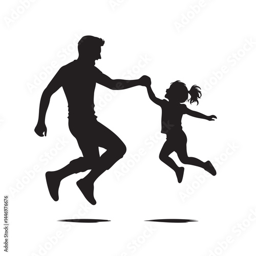 Dad and Child Jumping Together Silhouette in Joyful Pose