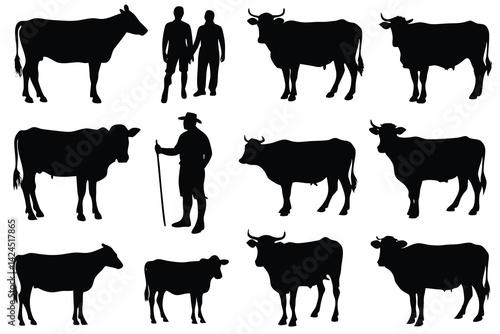 cow, silhouette, animal, farm, vector, sheep, bull, illustration, pig, horse, beef, goat, chicken, mammal, cattle, animal, lamb, black, meat, calf, icon, outline, milk, nature, farm animal