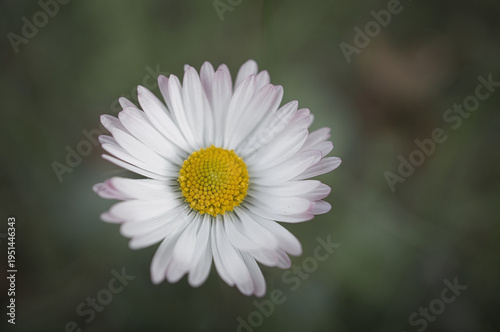 Daisy macro with pink petals against green bokeh in spring