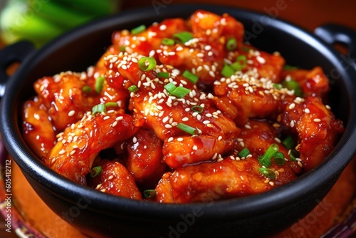 Dakgangjeong sweet crispy Dakgangjeong is a deep-fried crispy chicken dish glaze Food photography