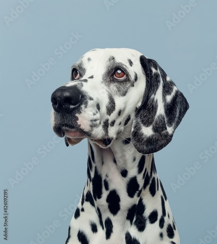 Dalmatian dog on minimalistic colorful background with Copy Space. Perfect for banners, veterinary ads, pet food promotions, and minimalist designs.