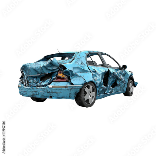 Damaged Blue Car on Transparent Background
