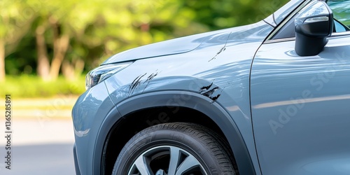 car, scratch, damage, auto, vehicle, transportation, automobile, accident, body, paint, blemish, mark, metal, chrome, fender, bumper, detail, defect, rust, dent, abrasion, wear, tear, impact, collision, automotive, repair, maintenance, surface, line, texture, grey, black, red, crash, wreck, broken, minor, white, background