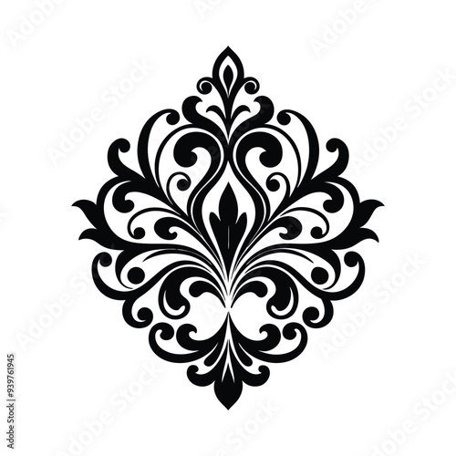 Damask baroque ornament border and frame ornament Floral vector ornament black silhouette