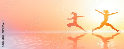 Dancers leaping gracefully at sunset.