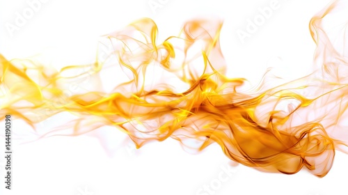 Dancing flames in orange and yellow, pure white backdrop. The raw energy of fire in motion.