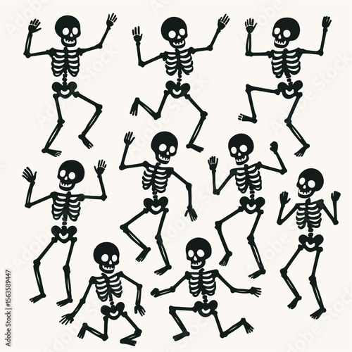 skeleton, dancing, flat, outline, halloween, skittish, holiday, party, celebration, costume, bone, death, skull, character, design, minimal, icon, symbol, element, set, collection, clip art, web, print, mobile, app, poster, background, decoration, graphic, art, pattern, seamless, simple, modern, isolated, funny