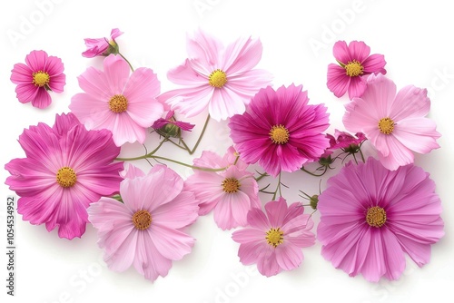 Dark and light pink cosmos flowers on white background