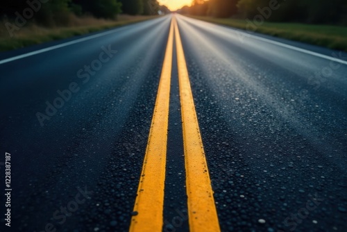 Dark asphalt highway with yellow center line, close up, close-up, motorway, freeway
