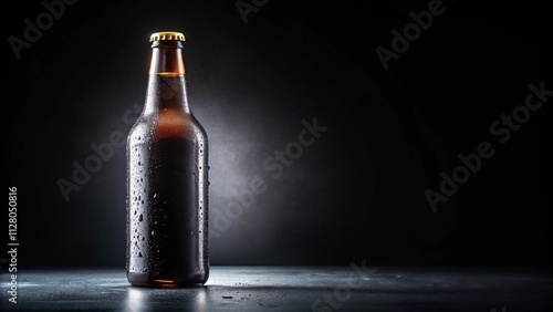 black background, stout, porter, beverage, drink, alcohol, copy space, studio shot, moody, mysterious, black, dark, shadow, texture, bottle, liquid, refreshment, brew, beer, ales, lager, food photography, still life, minimalism, isolated, single object, closeup, detailed, hi-res