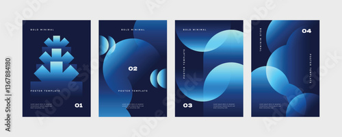 Dark blue abstract geometric gradient purple and orange cover design. Modern art bauhaus template for poster and flyer.
