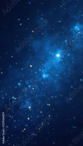 Dark blue night sky with glittering stars and sparkles, bokeh effect , celestial, dark blue frame