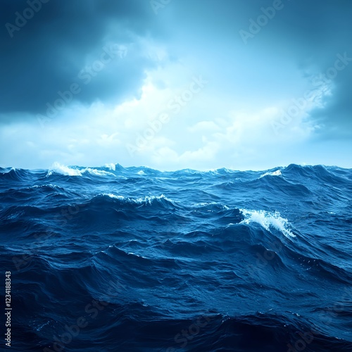 Dark Blue Ocean Waves Under Stormy Sky