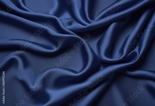 Dark blue silk fabric background, view from above. Smooth elegant black silk or satin luxury cloth texture can use as abstract background with copy space, close-up