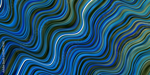 Dark BLUE vector backdrop with bent lines. Colorful illustration in circular style with lines. Pattern for booklets, leaflets.