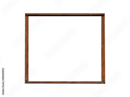 Dark brown wooden square 1 to 1 aspect ratio frame isolated.