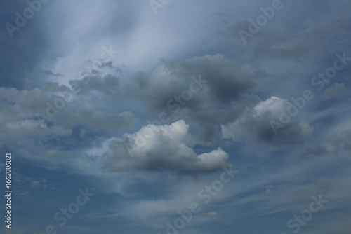 dark dramatic sky with black stormy clouds before rain or snow as abstract background, extreme weather, the sun shines through the clouds, high contrast photo