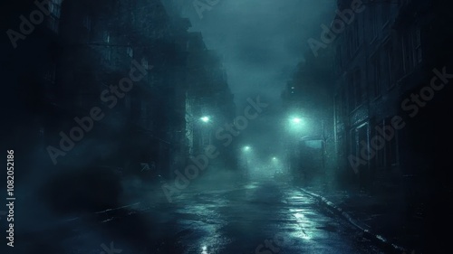 Dark, empty urban street at night with faint city lights through fog, streetlights off, occasional distant car alarm, eerie atmosphere highlighting sudden power loss in bustling city.
