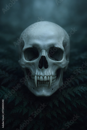 Dark Fantasy Art Close-Up of a Fanged Skull