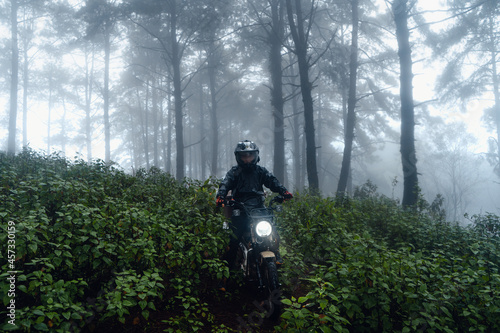 dark forest during a foggy,forest pine in asia
