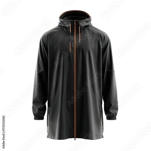 jacket, hooded, waterproof, rain, coat, anorak, casual attire, fashion, style, casual clothes, protection, functional, hard-wearing, long, oversize, classic, modern, stylish, trendy, contemporary, lightweight, polyester, nylon, zip, front, closure, detail, accent, tan, brown, grey, black, clothing, apparel, outerwear, wind, weather, active, sport, leisure, urban, city, travel, hiking, camping