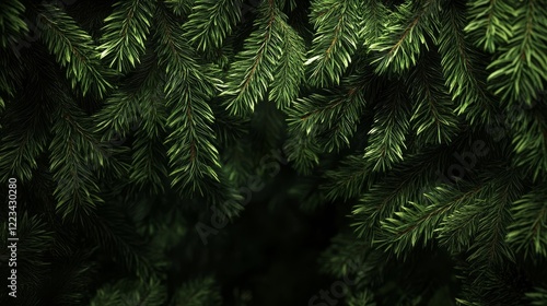 Dark Green Evergreen Fir Tree Branches Lush Nature Background Texture Detailed Winter Holiday Forest Pine Needles Christmas Botanical Design Element