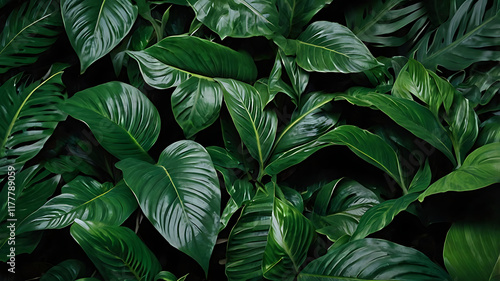 Dark green foliage leaves nature background