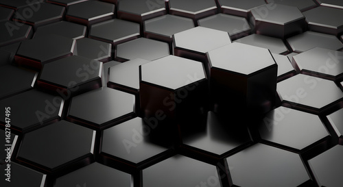 hexagonal, hexagon, pattern, geometric, texture, background, abstract, grid, dark, black, grey, metal, steel, industrial, modern, tech, technology, futuristic, three-dimensional, render, design, surface, shape, structure, connectivity, network, digital, science, datum, molecular
