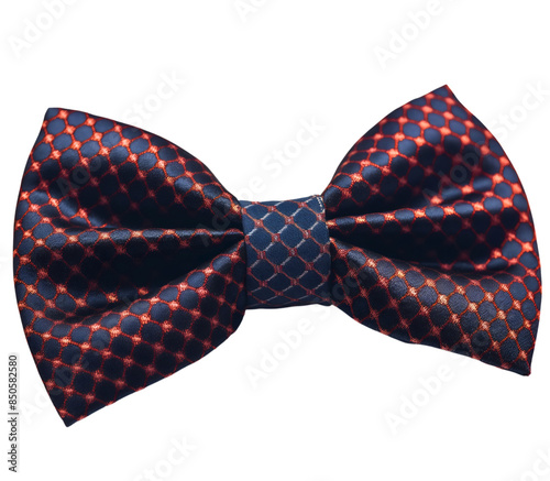 Dark navvy blue and red pattern on a bow tie object isolated on a transparent background. Elegant fashion style accessory, celebration suit ribbon, luxury formal gentleman clothing for ceremony