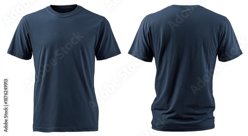 apparel, clothing, garment, shirt, t-shirt, tee, dark, blue, front, back, view, casual attire, wear, cotton, polyester, fabric, short, sleeve, sleeve, crew, neck, unisex, male, female, simple, basic, plain, solid, design, style, fashion, blank, template, isolated, presentation, product, photo, studio, shot, clean, crisp, object, nobody, lightweight