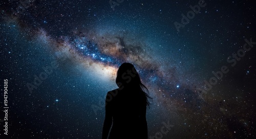space, cosmos, galaxy, star, universe, astronomy, planet, earth, silhouette, woman, observing, night, dark, mystery, celestial, sky, bright, glittering, radiant, stellar, orbit, view, exploration, adventure, discovery, immensity, huge, dream, wonder, fantasy, fascination, curiosity, inspiration, science, nebula, skyline, darkness, theme, art, background, vector, illustration