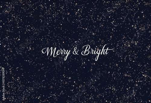 Dark Starry Background with ‘Merry & Bright’ Text – Festive Holiday Design in Dark Blue for Cheerful Use