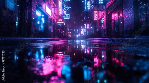 Dark urban street with glowing neon signs in captivating design picture