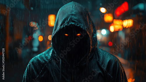 hacker, forum, anonymity, underground, neon light, rain, city landscape, phishing, identity theft