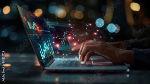 laptop, datum, analysis, visualisation, chart, graph, technology, digital, business, finance, marketing, workspace, work, typing, keyboard, screen, night, dark, blue, cyber, web, online, software, programming, coding, design, research, development, statistic, trend, pattern, information, system, network, innovation, growth, future, progress