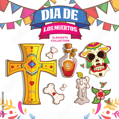 day of the dead or dia de los muertos elements vector design in cartoon illustration style