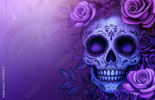 day of the dead, skull, decorative, background, celebration, mexican, floral, vibrant, festive, culture, tradition, holiday, art, ornate, purple, flower, decoration, dark, skeleton, hand-drawn, rose, gothic, dramatic, symbolic, traditional, festival, heritage, colourful, artistry, halloween, head, illustration, human, bone, scarey, symbol, anatomy, face, design, bone, dead, tattoo