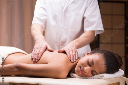 massage, relax, spa, rest, at ease, comfort, regeneration, relaxing, massager, beige, dark, towel, smiling, smile, dark skin, hand