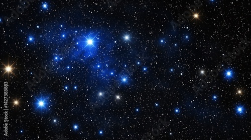 Dazzling cosmic scene with vibrant blue and white stars scattered across a dark, inky backdrop