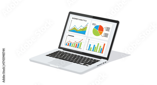 laptop, business, datum, chart, graph, analysis, diagram, finance, report, technology, information, presentation, screen, market, performance, strategy, growth, trend, investment, management, project, planning, monitor, keyboard, device, computer, display, innovation, solution, research, forecast, infographic, statistic, success, profit, desktop, isometric, vector, illustration, communication, digital