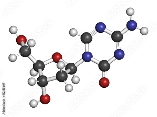 Decibatine drug molecule. 3D rendering. Atoms are represented as spheres with conventional color coding: hydrogen (white), carbon (grey), nitrogen (blue), oxygen (red).