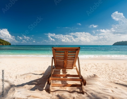 Deck chair at the tropical sandy beach - perfect vacations destination