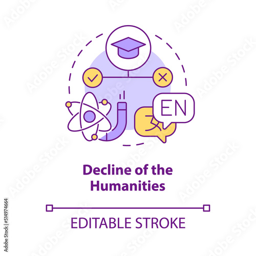 Decline of humanities concept icon. Impractical discipline. Issue in higher education abstract idea thin line illustration. Isolated outline drawing. Editable stroke. Arial, Myriad Pro-Bold fonts used