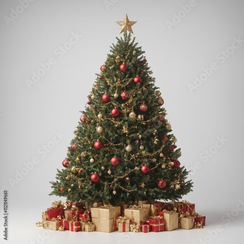 christmas, tree, decorated, ornament, red, gold, festive, glowing, star, holiday, elegant, smooth, detailed, radiant, seasonal, bright, vibrant, sparkling, classic, beautiful, minimal, centered, aglow, inviting, crisp, artistic, joyful, evergreen, stylish, magical, cosy, balanced, clean, modern, handcraft, colourful, timeless, serene, simple, refined, warm, decoration, christmas tree, christmas, gift, december