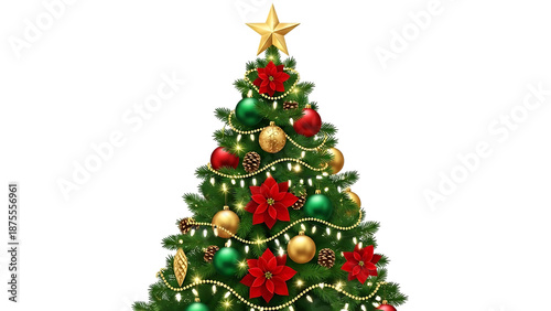 Decorated christmas tree with ornaments isolated on white background