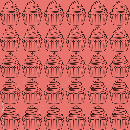 cupcake, cherry, background, pink, cream, decorated, food, sweet, vector, illustration, dessert, baked, celebration, snack, frosting, frosted, birthday, party, nobody, sugar, horizontal, baking, delicious, muffin, space, bakery, pastry, graphic, design, calorie, swirl, icon, 1, turquoise, clip art