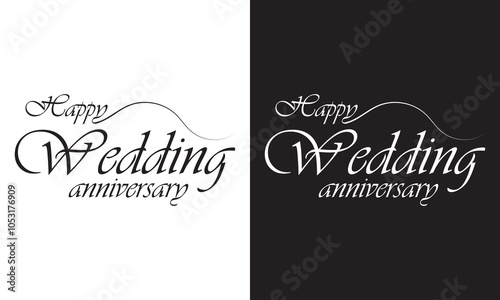 Decorative Calligraphy-Lettering design for happy Wedding Anniversary greetings. isolated on white and black background. Vector illustration. EPS 10