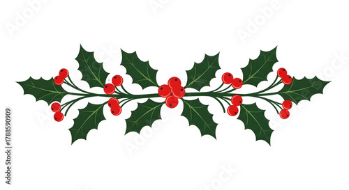 christmas, holly, berry, leaf, green, red, tree branch, plant, nature, decoration, holiday, winter, season, festive, christmas, traditional, symbol, element, design, studio, shot, clean, simple, botanical, foliage, evergreen, sprig, chaplet, garland, centrepiece, detail, texture, pattern, graphic, celebration, new, year, eve, party, greeting, card, poster, advertisement, commercial, seasonal