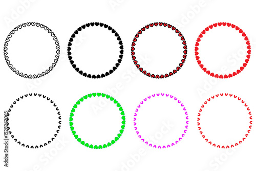 Decorative circle frame hearts template design set of round border in unique pattern. Circle frame detail vector design set. Simple ornament design for labels, invitation cards, profile picture.